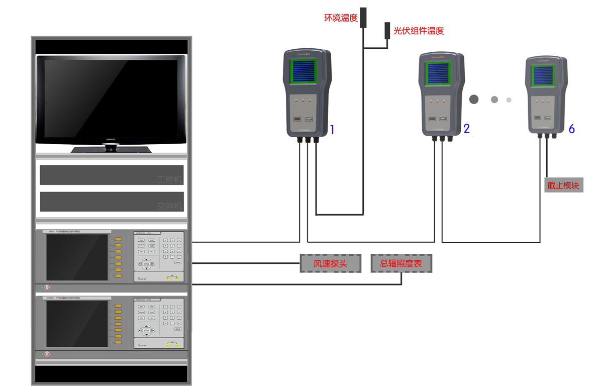2. 支持多路輻照度溫度數(shù)據(jù)輸入功能,可通過(guò)關(guān)系設(shè)置,將一組輻照度溫度數(shù)據(jù)對(duì)應(yīng)相關(guān)被測(cè)光伏組件。
