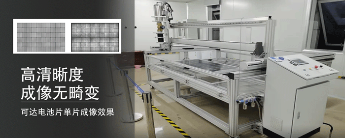 高清EL外觀一體機 采用多相機直射檢測方式,總像素4800萬,可對層壓前及層壓后組件進行高清EL檢測成像,檢測精度達到標準精0.5mm/pixel ~1.0mm/pixel,滿足流水線高清EL成像檢測需求。