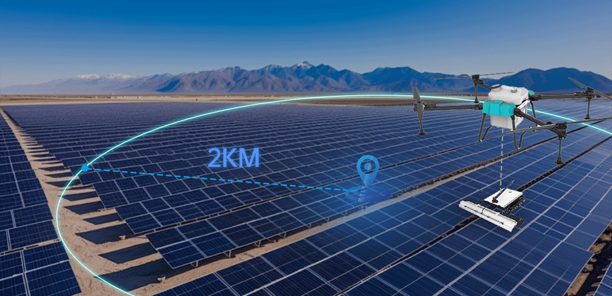 光伏清洗??機LXH233應?于光伏等電?系統的組件?板清洗作業,此系統可快速?效的完成光伏組件?板的的?洗運維,并可制定巡航軌跡?動進??常性運維測試。